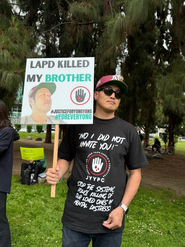 도움을 요청하는 가족의 전화로 출동한 LAPD가 단 8초만에 피해자에 총격을 가해 죽음에 이르게 한 사건을 규탄하고, 정신질환자 대응 방식의 개선을 요구하는 범커뮤니티 차원의 집회가 지난 2일 LA한인타운 내 윌셔 잔디광장에서 열렸다. 피해자인 양용씨의 진상을 규명하기 위한 ‘양용을 위한 사람들의 정의 위원회(JYYPC)’주최로 열린 이 날 집회에는 데이비드 김 후보(연방하원 34지구), 그레이스 유 후보(LA시 10지구)와 피해자의 아버지가 속한 서울대동문회, 재미대일고 동문회 등 한인 100여명이 참여했다. 또한 Black Lives Matter시위 당시 활동한 흑인 교회 관계자들도 함께 해 목소리를 높였다.